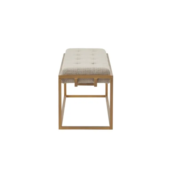 Add A Lovely New Seat To Your Home With This Tan Tufted Bronze Metal Bench. It Will Make The Perfect Addition To Your Li…
