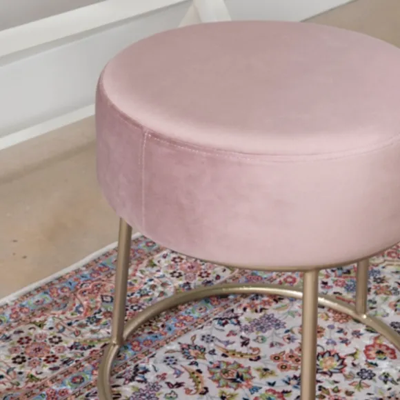 Decorate Your Home With This Gorgeous, Vintage-Inspired Velvet Vanity Stool. The Pink Velvet Upholstered Vanity Stool Will Add A Unique Twist To Your Home’S Decoration And Impress Any Guest. Stool Measures 16.9L X 16.9W X 18.9H In.; Seat Height Measures 18.25H In. Crafted With A Metal Frame And Velvet Upholstery Foam Fill Hues Of Pink Gold Finish Maximum Weight: 275 Lbs. No Assembly Required Not Intended For Commercial Use Care: Spot Clean Only.This Item Is Available At Kirklands.Com Only, Not Available In Stores. Please Note: This Item Cannot Be Shipped To Apo/Fpo Addresses.