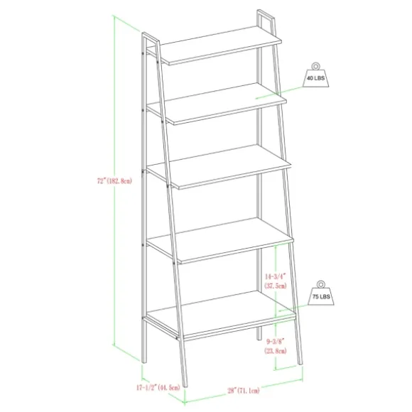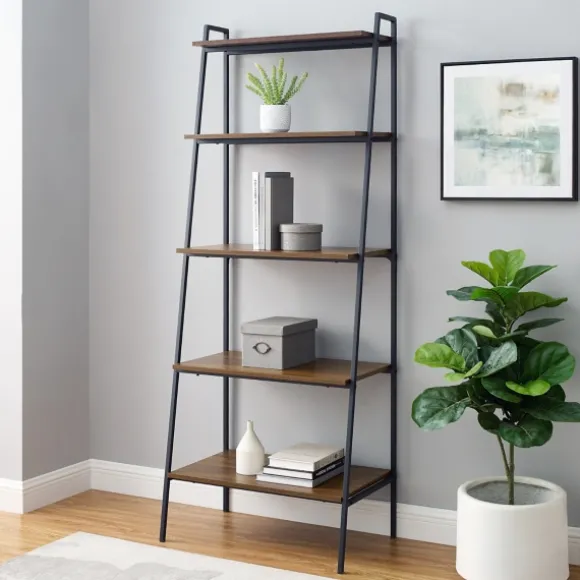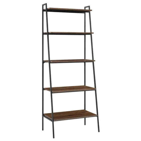 Fashion And Function Come Together Beautifully In Our Dark Walnut Industrial Ladder Shelf. You’Ll Love The Sleek, Industrial Style Of This Storage Shelf. Shelf Measures 28L X 18W X 72H In. Crafted Of Warp-Resistant Wood Composite, Durable Laminate, And Powder-Coated Steel Walnut Finish Features Five (5) Shelves Top Shelf Measures 28L X 17.5W X 11.16H In. Middle Shelf Measures 28L X 17.5W X 13.75H In. Bottom Shelf Measures 28L X 17.5W X 14.75H In. Weight: 43 Lbs. Full Assembly Required Not Intended For Commercial Use Care: Dust With A Soft, Dry Cloth.This Item Is Available At Kirklands.Com Only, Not Available In Stores. Please Note: This Item Cannot Be Shipped To Apo/Fpo Addresses. Warning:Cancer And Reproductive Harm – For More Information Go Towww.P65Warnings.Ca.Gov .