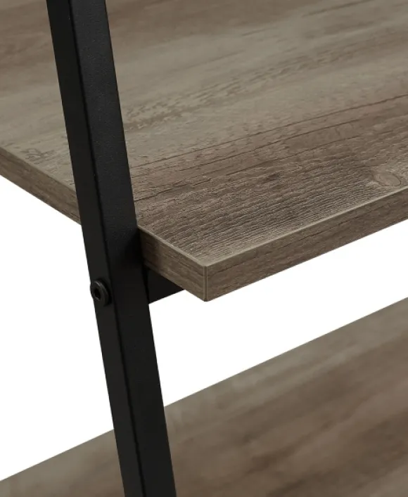 Add Our Gray Wash Industrial Ladder Bookshelf To Your Office Space. Alternate The Decor From Shelf To Shelf With Stacked Books And Faux Floral Arrangements.Bookshelf Measures 28L X 18W X 72H In. Crafted With Laminate, Metal, And Warp-Resistant Wood Composite Gray Wash Wood Finish Black Frame Finish Ladder Design Urban Industrial Style Five (5) Shelves Includes Wall Anchor For Stability Full Assembly Required Not Intended For Commercial Use Care: Dust With A Soft, Dry Cloth.This Item Is Available At Kirklands.Com Only, Not Available In Stores. Please Note: This Item Cannot Be Shipped To Apo/Fpo Addresses.