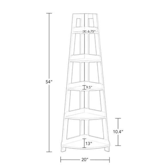 Display Your Favorite Books And Other Decorative Items With Style On This White 5-Tier Corner Ladder Bookshelf. Its Corner Design Is Perfect For Small Spaces! Plus, Its Open Style And Light Finish Will Add A Fresh, Airy Element To Your Space. Bookshelf Measures 20L X 14.5W X 54H In.Crafted Of Wood Compositewhite Finishfeatures Five (5) Fixed, Open Shelvesladder Designanchors To The Wall For Added Stabilityshelf Weight Capacity: 10 Lbs.Assembly Requirednot Intended For Commercial Usecare: Dust With A Soft, Dry Cloth.This Item Is Available At Kirklands.Com Only, Not Available In Stores. Please Note: This Item Cannot Be Shipped To Apo/Fpo Addresses.Warning:This Product Can Expose You To Chemicals Including Formaldehyde Which Is Known To The State Of California To Cause Cancer And Birth Defects Or Other Reproductive Harm.For More Information Go Towww.P65Warnings.Ca.Gov .