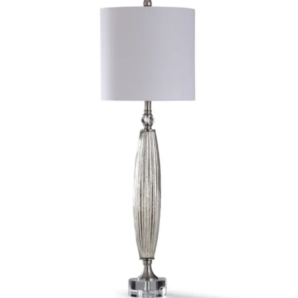 Add Some Subtle Elegance To Your Home With This Silver Ribbed Glass Buffet Lamp. Its Mercury Glass Finish And Crystal Detail Will Stand Out In Any Room! Lamp Measures 43H In.Crafted Of Glass And Metalsilver Mercury Glass Finishribbed, Elongated Body With A Crystal Glass Basehardback Drum Shade In White Fabricshade Measures 13.5H X 13 In. In Diametersocket Accommodates A 100-Watt, Type-A Bulbfeatures A Clear, Plug-In Cordcare:Dust With A Soft, Dry Cloth. Do Not Exceed Specified Wattage.This Item Is Available At Kirklands.Com Only, Not Available In Stores. Please Note: This Item Cannot Be Shipped To Apo/Fpo Addresses.Warning:Cancer And Reproductive Harm – For More Information Go Towww.P65Warnings.Ca.Gov .