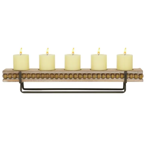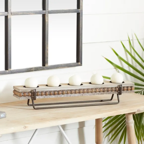 The Brown Beaded Wood And Metal Base Candle Holder Will Make Any Table Setting Glow With Natural Charm. Style It On Your Dining Table Or Console As A Centerpiece! Holder Measures 24L X 4.6W X 4H In.Crafted Of Wood And Metalrunner Stylenatural Brown Wood Finishblack Metal Stand Finishbeaded Wood Platform Designheld On Metal Standaccommodates Five (5) 3 In. Pillar Candles; Candles Sold Separatelycare: Dust With A Soft, Dry Cloth.This Item Is Available At Kirklands.Com Only, Not Available In Stores. Please Note: This Item Cannot Be Shipped To Apo/Fpo Addresses.Warning:Cancer And Reproductive Harm – For More Information Go Towww.P65Warnings.Ca.Gov .