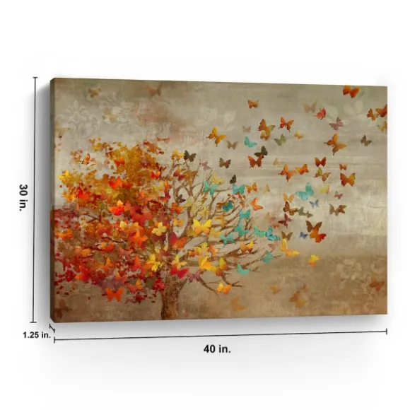 Indulge In The Whimsical Nature Of Our Butterfly Tree Giclee Canvas Art Print. As Its Leaves Begin To Change And Ultimately Fall, Its Butterfly Inhabitants Flutter Away In The Wind!Art Measures 40L X 1.25W X 30H In. Giclee Printed On Studio-Quality Canvas On Solid Wood Stretchers Gallery Wrapped Edges Complete The Look Features A Wave Of Butterflies Fluttering Away From A Changing Tree Hues Of Red, Orange, Yellow, Brown, And Blue Weight: 4.93 Lbs. Comes Ready For Wall Mount; No Additional Hanging Hardware Required Care: Dust With A Soft, Dry Cloth.This Item Is Available At Kirklands.Com Only, Not Available In Stores. Please Note: This Item Cannot Be Shipped To Apo/Fpo Addresses.