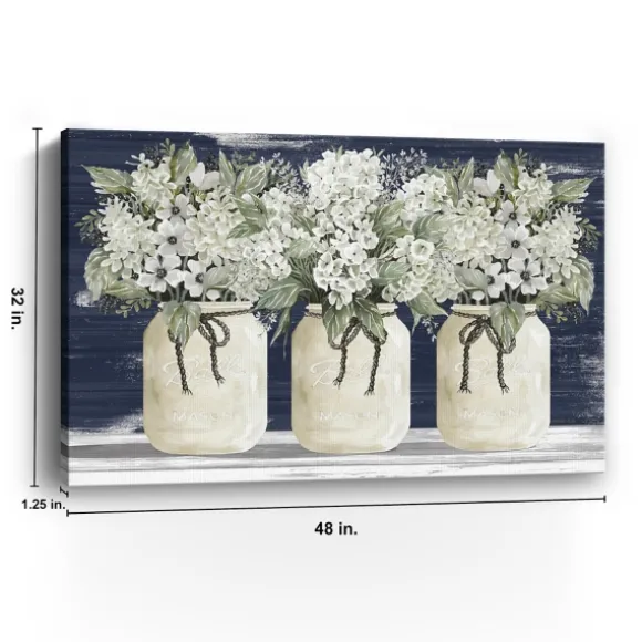 Freshen Up Your Wall Decor With Our White Floral Trio Giclee Canvas Art Print! The Rustic Floral Style Of This Print Pairs Wonderfully With Your Farmhouse Decor.Art Measures 48L X 1.25W X 32H In.Giclee Printed On Studio-Quality Canvas On Solid Wood Stretchersgallery Wrapped Edges Complete The Lookfeatures A Trio Of Bouquets In Mason Jarhues Of Navy, White, Green, And Grayweight: 11.8 Lbs.Comes Ready For Wall Mount; No Additional Hanging Hardware Requiredcare: Dust With A Soft, Dry Cloth. This Item Is Available At Kirklands.Com Only, Not Available In Stores. Please Note: This Item Cannot Be Shipped To Apo/Fpo Addresses.