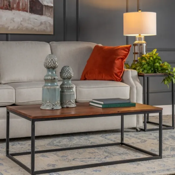 Kirkland’s Home Coffee Tables-Acacia Wood And Black Iron Coffee Table
