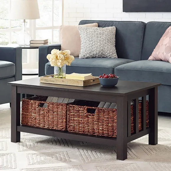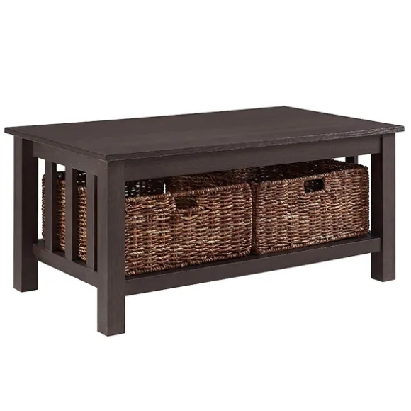 Add A Bit Of Extra Storage To Your Space With Our Espresso Traditional Wooden Basket Coffee Table. Stow A Blanket Or Last Season’S Cookbook In Its Convenient, Woven Baskets. Meanwhile, Its Classic Tabletop Finish Will Complement A Caged Lantern Or Two!Table Measures 40L X 22W X 18H In. Crafted Of Warp-Resistant Wood Composite, Durable Laminate, And Wicker Espresso Finish Features Two (2) Wicker Baskets Accented With Open Slatted Sides Full Assembly Required Care: Dust With A Soft, Dry Cloththis Item Is Available At Kirklands.Com Only, Not Available In Stores. Please Note: This Item Cannot Be Shipped To Apo/Fpo Addresses.