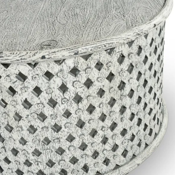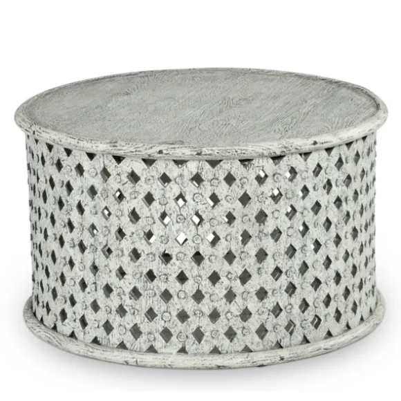 The Round White Wood Lattice Coffee Table Will Bring Bold, Rustic Character To Your Living Room. Featuring An Aged Alaba…