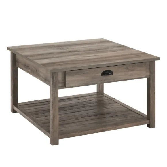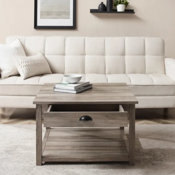 Update Your Farmhouse Inspired Living Or Bonus Room With Our Gray Wash Square Coffee Table! The Drawer And Bottom Shelf …