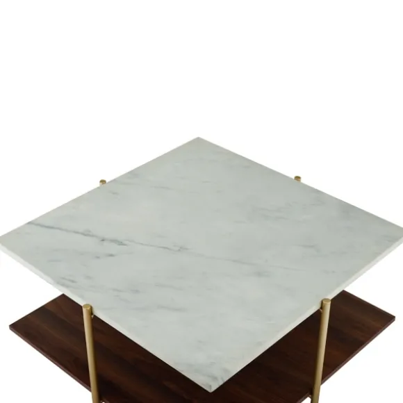 The White Faux Marble And Brown Wood Coffee Table Will Incorporate Mid-Century Modern Allure Into Your Living Room. With Its Mixed Material Design And Three Tone Finish, It Has A Distinct, Glam Look That You’Ll Love. Table Measures 32L X 32W X 17H In.Crafted Of Laminate, Metal, And Wood Compositewhite Faux Marble Top Finishbrown Bottom Shelf Finishgold Metal Leg Finishsquare Shaped Toptop Features Uv Coating For Moisture Resistance And Glossy Finishweight Capacity: 100 Lbs.Full Assembly Requirednot Intended For Commercial Usecare: Dust With A Soft, Dry Cloth.This Item Is Available At Kirklands.Com Only, Not Available In Stores. Please Note: This Item Cannot Be Shipped To Apo/Fpo Addresses.Warning:This Product Can Expose You To Chemicals Including Dust And Phthalates Which Is Known To The State Of California To Cause Cancer And Birth Defects Or Other Reproductive Harm.For More Information Go Towww.P65Warnings.Ca.Gov .