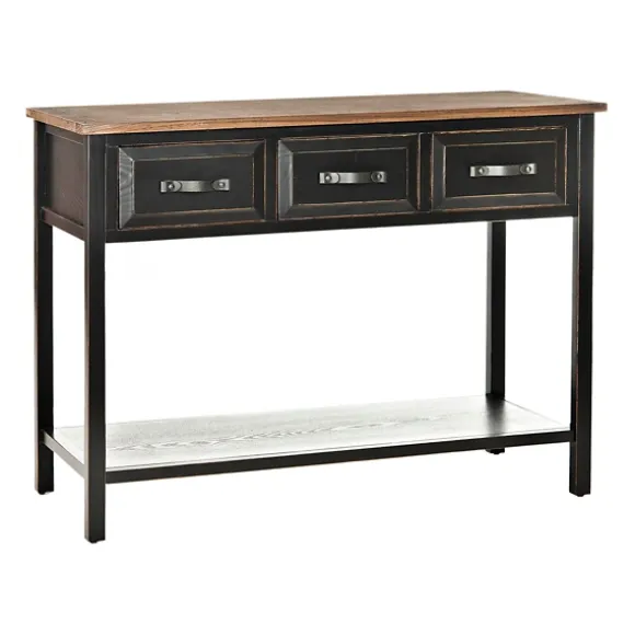 Give Your Home A Touch Of Old World Charm With Our Ainsly Distressed Black Oak Top Console Table! Featuring A Rich Oak-Stained Top, This Piece Is A Rustic Dream. Table Measures 42.1L X 15W X 30H In.Crafted Of Wooddistressed Black Frame Finish With An Oak-Stained Topincludes Three (3) Drawers And One (1) Lower Shelfaccented With Silver Hardwareweight Capacity: 50 Lbs.Some Assembly Requirednot Intended For Commercial Usecare: Dust With A Soft, Dry Cloth.This Item Is Available At Kirklands.Com Only, Not Available In Stores. Please Note: This Item Cannot Be Shipped To Apo/Fpo Addresses.Warning:This Product Can Expose You To Chemicals Including Wood Dust Which Is Known To The State Of California To Cause Cancer And Birth Defects Or Other Reproductive Harm.For More Information Go Towww.P65Warnings.Ca.Gov .