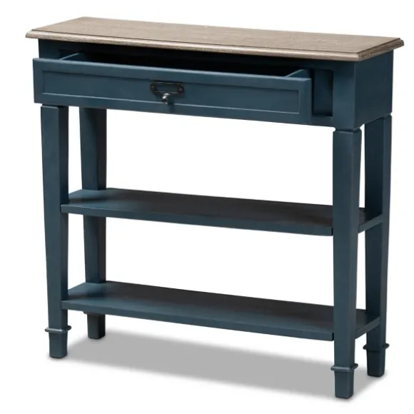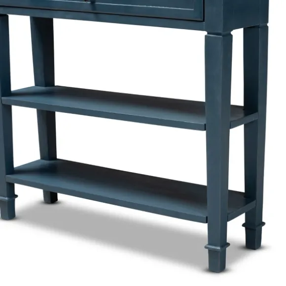 Bring A Bit Of Function To Your Farmhouse Style! Our Daphne Blue Bayur Wood Two-Shelf Console Table Features Ample Storage Space And A Navy Color That’Ll Complement Your Chic Decor. Table Measures 31.5L X 10W X 29.8H In.Crafted Of Bayur Wood, Wood Composite, And Metalblue Frame Finish With A Whitewashed Natural Wood Tabletopfeatures Carved Fluted Legsincludes One (1) Drawer And Two (2) Lower Shelvesaccented With Black Hardwaresome Assembly Requirednot Intended For Commercial Usecare: Wipe With A Soft, Damp Cloth.This Item Is Available At Kirklands.Com Only, Not Available In Stores. Please Note: This Item Cannot Be Shipped To Apo/Fpo Addresses.Warning:This Product Can Expose You To Chemicals Including Formaldehyde And Phthalate Which Are Known To The State Of California To Cause Cancer And Birth Defects Or Other Reproductive Harm.For More Information Go Towww.P65Warnings.Ca.Gov .