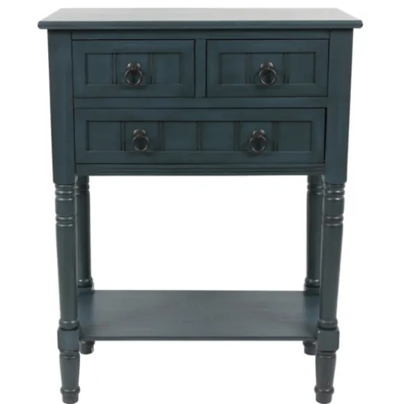 Our Navy 3-Drawer Console Table Is Functional Inside And Out! On The Outside, This Table Has A Distressed Finish And Vintage Accents. On The Inside, The Table’S Drawers And Shelf Provide Ample Storage For Whatever You Need!Table Measures 23.6L X 13W X 30.5H In.Crafted Of Wood And Wood Compositedistressed Navy Finishfeatures Three (3) Drawers And One (1) Lower Shelf For Storageantique Bronze Hanging Ring Pull Handle Hardwareturned Leg And Shiplap Drawer Front Accentssome Assembly Requiredcare: Dust With A Soft, Dry Cloth.This Item Is Available At Kirklands.Com Only, Not Available In Stores. Please Note: This Item Cannot Be Shipped To Apo/Fpo Addresses.