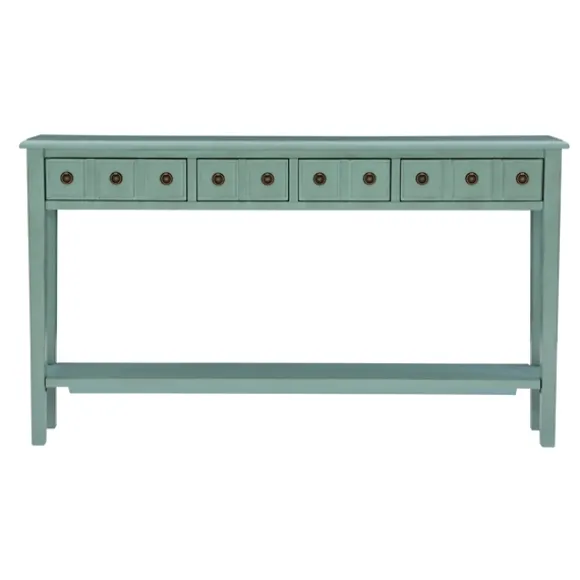 You’Ll Love The Well-Worn Style Of Our Paloma Teal 4-Drawer Console Table! Antique Bronze And Distressed Teal Come Together Here With A Stunning Effect. Its Slender Size Makes It Ideal For Hallways And Entryways.Table Measures 60L X 10W X 35H In.Crafted Of Wood, Wood Composite, And Metaldistressed Teal Finish With A Dark Glazefeatures Two (2) Large Drawers, Two (2) Small Drawers, And One (1) Lower Shelf For Storagetapered Leg Designantique Bronze Pull Hardware With Floral Medallion Detailstop Weight Capacity: 100 Lbs.Shelf Weight Capacity: 50 Lbs.Assembly Requirednot Intended For Commercial Usecare: Dust With A Soft, Dry Cloth.This Item Is Available At Kirklands.Com Only, Not Available In Stores. Please Note: This Item Cannot Be Shipped To Apo/Fpo Addresses.Warning:This Product Can Expose You To Chemicals Including Di-(2-Ethyl Hexyl) Phthalate, Which Is Known To The State Of California To Cause Cancer And Birth Defects Or Other Reproductive Harm.For More Information Go Towww.P65Warnings.Ca.Gov/Furniture