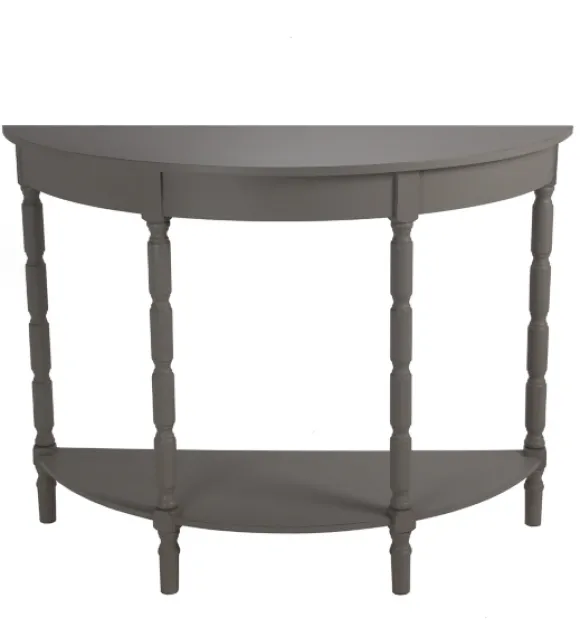 Give Your Living Room Or Entryway A Refresh With This Gray Wood Half Moon Console Table. Perfect For Displaying Photos, Plants, And Other Decor, This Table Makes It Easy To Add Your Personal Style To Any Space! Table Measures 41.75L X 15.75W X 30.75H In.Crafted Of Woodgray Finishfeatures A Lower Shelfhalf-Moon Designsimple Spindle Legsassembly Requirednot Intended For Commercial Usecare: Dust With A Soft, Dry Cloth.This Item Is Available At Kirklands.Com Only, Not Available In Stores. Please Note: This Item Cannot Be Shipped To Apo/Fpo Addresses.