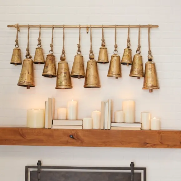 Ring In The Vintage Charm With This Aged Gold Triangle Bells Wall Plaque! Accented With Jute Rope And Wooden Clappers, This Collection Of Bells Is Perfect For Creating Your Own In-Home Sanctuary. Plaque Measures 48L X 5W X 28H In.Crafted Of Solid Iron With Wooden Clappershangs From Jute Ropeaged Gold Finishincludes Twelve (12) Bellsweight: 12.2 Lbs.Hangs From Back-Mounted Hardwarecare: Dust With A Soft, Dry Cloth.This Item Is Available At Kirklands.Com Only, Not Available In Stores. Please Note: This Item Cannot Be Shipped To Apo/Fpo Addresses.