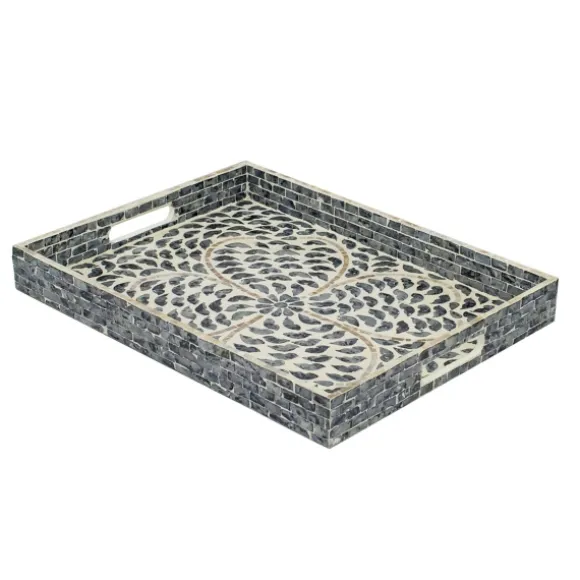 This Black And Ivory Mosaic Capiz Shell Tray Will Add The Perfect Decorative Touch To Any Space. With Its Mosaic Floral Design And Capiz Accents, It’S A One-Of-A-Kind Piece.Tray Measures 17.7L X 13.8W X 2H In.Crafted Of Wood Composite And Capiz Shell Rectangular Shapefloral Mosaic Designhues Of Black, Ivory, And Grayfeatures Cut Out Handlesfor Decorative Use Onlycare: Dust With A Soft, Dry Cloth.This Item Is Available At Kirklands.Com Only, Not Available In Stores. Please Note: This Item Cannot Be Shipped To Apo/Fpo Addresses.