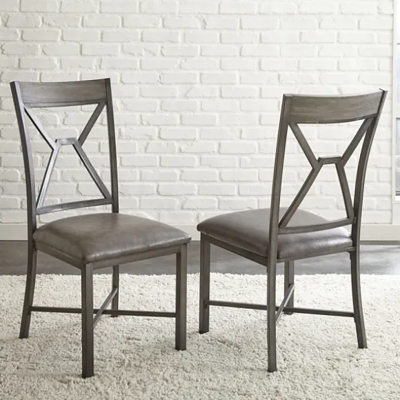 Complete Your Dining Room With The Industrial Look Of Our Gray Amalise Dining Chairs! These Simple, Geometric Pieces Are Neutral Enough To Match Any Decor. You’Ll Love Their Wooden Cap Rails And Gray Vinyl Seats.Set Includes Two (2) Chairs Each Chair Measures 19L X 24W X 39H In.; Seat Height Measures 18H In. Crafted With A Metal Frame Black Brushed Gray Frame Finish Padded Seat Upholstered In Gray Vinyl Wooden Cap Rail Open Metal Geometric Back Weight Capacity: 250 Lbs. Per Chair Assembly Required Not Intended For Commercial Use Care: Dust With A Soft, Dry Cloth.This Item Is Available At Kirklands.Com Only, Not Available In Stores. Please Note: This Item Cannot Be Shipped To Apo/Fpo Addresses.