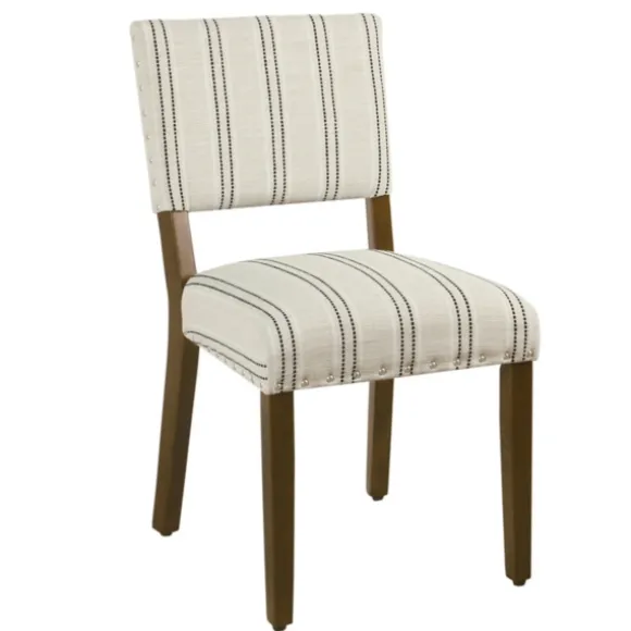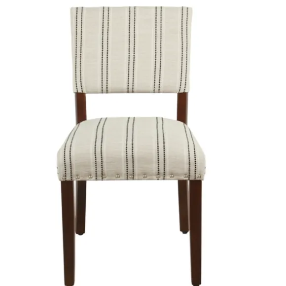 Create The Ultimate Farmhouse Look For Your Dinner Parties With The Help Of Our Black And White Striped Dining Chairs. Each Chair Features A Subtle Pinstripe Print With A Golden, Nailhead Trim! You’Ll Love The Contrast Of Their Dark Walnut Legs.Set Includes Two (2) Chairs Each Chair Measures 23.25L X 18.5W X 34.8H In.; Seat Height Measures 20.5H In. Crafted With Sturdy, Wood Frame Upholstered In Cream Polyester Fabric Black Pinstripe Design Accented With Gold Nailhead Trim Dark Walnut Leg Finish Weight Capacity: 250 Lbs. Some Assembly Required Not Intended For Commercial Use Care: Dust With A Soft, Dry Cloth.This Item Is Available At Kirklands.Com Only, Not Available In Stores. Please Note: This Item Cannot Be Shipped To Apo/Fpo Addresses.