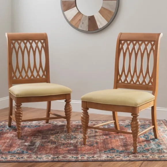 Give Your Dining Area A Classically Glamorous Look With This Set Of Brown Hollywood Regency Dining Chairs. Detailed With Curved Front Legs And Elegant Cutout Designs, These Chairs Are Sure To Stand Out. Set Includes Two (2) Chairseach Chair Measures 23L X 27.5W X 40H In.; Seat Measures 20H In.Crafted Of Beechwood And Faux Leatherbrown Frame Finishupholstered In A Tan Faux Leatherfeatures Cutout Back Designscurved Front Legsweight Capacity: 300 Lbs. Eachassembly Requirednot Intended For Commercial Usecare: Dust With A Soft, Dry Cloth.This Item Is Available At Kirklands.Com Only, Not Available In Stores. Please Note: This Item Cannot Be Shipped To Apo/Fpo Addresses.