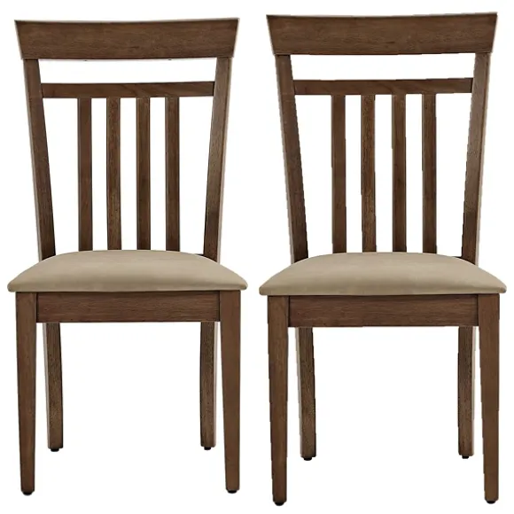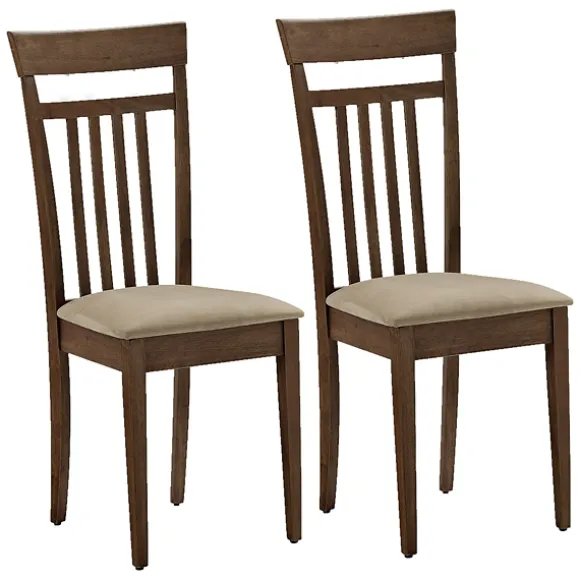 Dine In Style With Our Beautiful Set Of Coffee Brown Wooden Dining Chairs. You’Ll Love The Timeless And Classic Design Of This Upholstered Seat Dining Chairs. Set Includes Two (2) Dining Chairs Each Chair Measures 21L X 17W X 39H In.; Seat Height Measures 18H In. Crafted Of Rubberwood Brown Finish Tan Seat Cushion Finish Features Slat Back Design Weight: 22 Lbs. Weight Capacity: 300 Lbs. Some Assembly Required Not Intended For Commercial Use Care: Dust With A Soft, Dry Cloth.This Item Is Available At Kirklands.Com Only, Not Available In Stores. Please Note: This Item Cannot Be Shipped To Apo/Fpo Addresses.