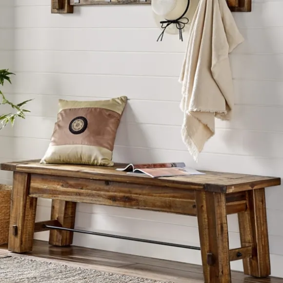 Kirkland’s Home Dining Chairs-Honey Acacia Wood Rustic Metal Rod Dining Bench