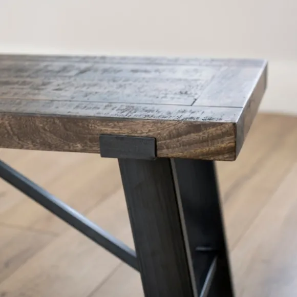 Elevate Your Dining Room With This Ivan Wood And Metal Dining Bench. Its Mix Of Rustic And Industrial Styles Will Bring A Unique Look Into Your Space! It Will Make Your Family Meals And Dinner Parties Even More Enjoyable! Bench Measures 62L X 16W X 18H In.Crafted Of Mango Wood And Ironblack Leg Finishdistressed Brown Seat Finishrectangular Shapeassembly Requirednot Intended For Commercial Usecare: Dust With A Soft, Dry Cloth.Contact Your Local Kirkland’S Store For Availability. Quantities And Selection May Vary By Location.