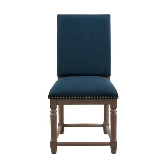 Add A Touch Of Elegance To Your Dining Area With These Navy Upholstered Wood Dining Chairs. With Their Rich Color And Soft Cushions, They Combine Comfort And Style. You’Ll Love How They Look Sitting Around Your Table! Set Includes Two (2) Dining Chairseach Chair Measures 23.25L X 19.25W X 38H In.; Seat Measures 20.5H In.Crafted With A Solid Wood Framereclaimed Gray Finishupholstered In Navy Polyester Fabricfoam Fillhand Carved, Turned Legsaccented With Nailhead Trimweight Capacity: 300 Lbs.Some Assembly Required; Tool Includednot Intended For Commercial Usecare: Dust With A Soft, Dry Cloth./Spot Clean Only.This Item Is Available At Kirklands.Com Only, Not Available In Stores. Please Note: This Item Cannot Be Shipped To Apo/Fpo Addresses.