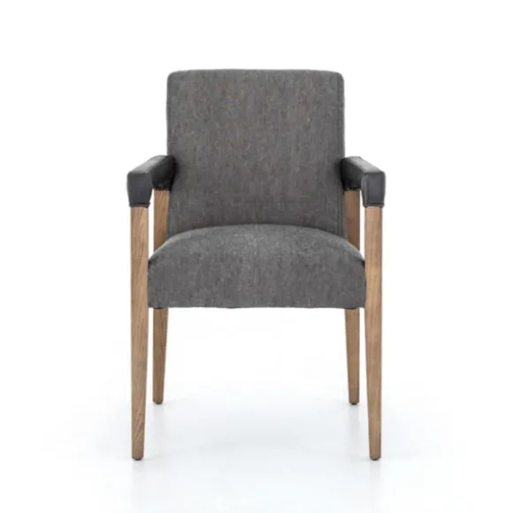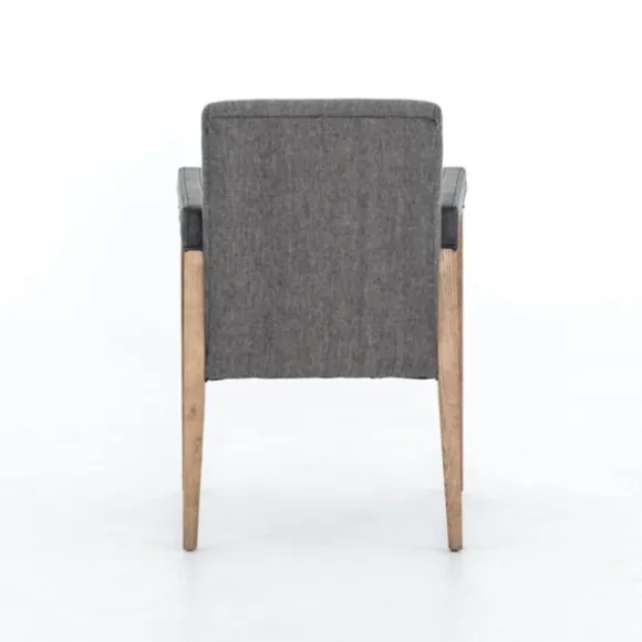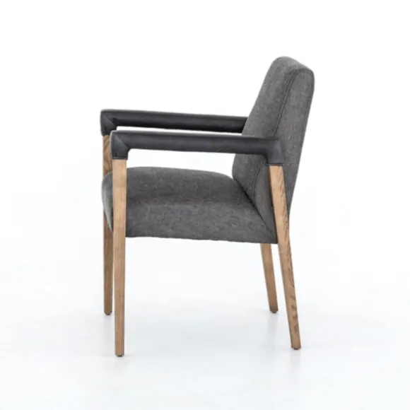 Bring Modern Sophistication Into Your Dining Space With This Reuben Ives Black Dining Chair. Its Mixed-Material Design Features A Hemp-Blend Upholstered Seat And Angular Oak Wood Arms. Chair Measures 25.5L X 23.25W X 33.75H In.; Seat Measures 20.75H In.Crafted Of Oak Wood, Polyester, And Polyurethanehigh-Density Foam Fillupholstered In A Black Hemp-Blend Fabricbrown Oak Wood Leg Finishleather Wrapped Armsweight Capacity: 250 Lbs.No Assembly Requirednot Intended For Commercial Usecare: Dust With A Soft, Dry Cloth.This Item Is Available At Kirklands.Com Only, Not Available In Stores. Please Note: This Item Cannot Be Shipped To Apo/Fpo Addresses.