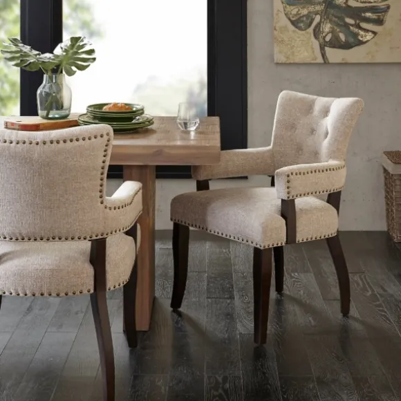 Update Your Classic Dining Room Setup With The Set Of Ivory Upholstered Tufted Dining Chairs! The Curved Armrests And Padded Seats Will Ensure That You Dine With Comfort. Set Includes Two (2) Chairseach Chair Measures 23.35L X 25.75W X 35H In.; Seat Measures 20H In.Crafted Of Polyester And Woodhigh-Density Foam Fillupholstered In An Ivory Polyester Fabricdark Brown Leg Finishbutton Tufted Backaccented With A Bronze Nailhead Trimweight Capacity: 300 Lbs.Some Assembly Requirednot Intended For Commercial Usecare: Spot Clean.This Item Is Available At Kirklands.Com Only, Not Available In Stores. Please Note: This Item Cannot Be Shipped To Apo/Fpo Addresses.