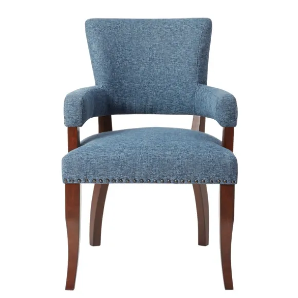 Dine In Style With Our Stunning Blue Warms Nailhead Trim Dining Chair. You’Ll Love The Luxurious Look Of The Eye-Catching Nailhead Trim Detailing. Chair Measures 24L X 25.5W X 35H In.; Seat Measures 19.5H In.Crafted With A Rubberwood Frameespresso Leg Finishupholstered In A 84% Polyester And 16% Acrylic Blue Fabricfeatures Brass Nailhead Trim Accentsweight: 21.61 Lbs.Weight Capacity: 300 Lbs.Some Assembly Requirednot Intended For Commercial Usecare: Spot Clean Only.This Item Is Available At Kirklands.Com Only, Not Available In Stores. Please Note: This Item Cannot Be Shipped To Apo/Fpo Addresses.
