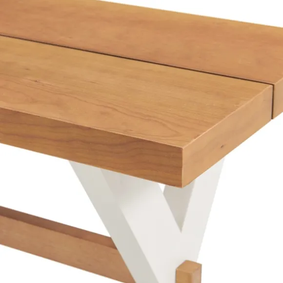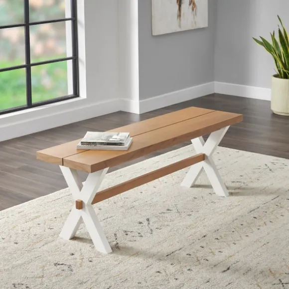 Create A Lovely Looking Dining Area In Your Home Using This White And Natural Wood X-Frame Dining Bench. Featuring A Chic, Two Tone Finish, This Bench Matches Any Decor Style From Coastal To Farmhouse! Bench Measures 48L X 14W X 18H In.Crafted Of Solid Birch Wood, Wood Composite, And Cherry Veneercherry Finish On Seatwhite Base Finishx-Frame, Trestle Base Designweight Capacity: 500 Lbs.Assembly Requirednot Intended For Commercial Usecare: Dust With A Soft, Dry Cloth.This Item Is Available At Kirklands.Com Only, Not Available In Stores. Please Note: This Item Cannot Be Shipped To Apo/Fpo Addresses.