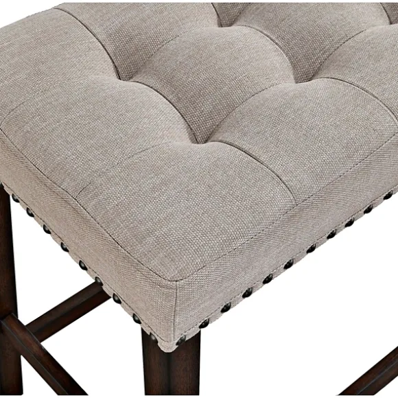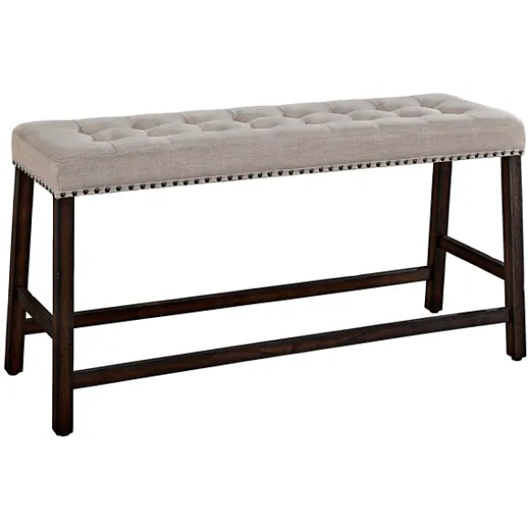 Make Your Everyday Meals A Little More Comfortable Sitting On This Brown Wood Button Tufted Upholstered Dining Bench. Its Casual, Traditional Look Will Effortlessly Blend With Any Interior Style. Bench Measures 50L X 16W X 24H In.Crafted Of A Solid Rubberwood And Wood Composite Framedark Walnut Base Finishupholstered In An Ivory Polyester Fabricpolyurethane Foam Fillbutton Tufted Seataccented With An Antique Brass Nail Head Trimweight Capacity: 500 Lbs.Assembly Requirednot Intended For Commercial Usecare: Spot Clean Only.This Item Is Available At Kirklands.Com Only, Not Available In Stores. Please Note: This Item Cannot Be Shipped To Apo/Fpo Addresses.