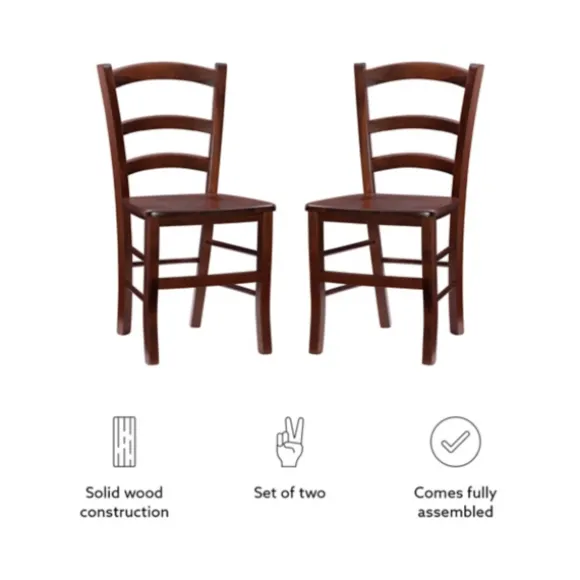 Give Your Dining Space A Simple Yet Charming Look Using The Set Of Brown Wood Ladderback Dining Chairs. Whether You Love A Traditional Or Farmhouse Interior, These Classic Chairs Will Look Lovely In Your Home. Set Includes Two (2) Chairseach Chair Measures 17.3L X 17.9W X 34.25H In.; Seat Measures 18.1H In.Crafted Of Beechwooddark Walnut Finishcurved Ladderback Designarmless Designweight Capacity: 290 Lbs.No Assembly Requirednot Intended For Commercial Usecare: Dust With A Soft, Dry Cloth.This Item Is Available At Kirklands.Com Only, Not Available In Stores. Please Note: This Item Cannot Be Shipped To Apo/Fpo Addresses.Warning:This Product Can Expose You To Chemicals Including Dehp Which Is Known To The State Of California To Cause Cancer And Birth Defects Or Other Reproductive Harm.For More Information Go Towww.P65Warnings.Ca.Gov .