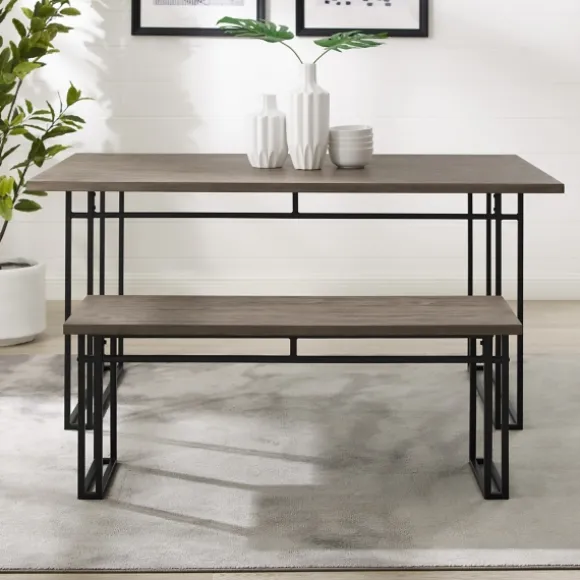 Whether It’S Topped With Family Gathered Close Or An Impromptu Seating Arrangement For Book Club, This Gray Wood Modern Dining Bench Provides Space For Any And All At Your Table. With Sturdy, Dual-Metal Legs, This Comfy Dining Bench Is Up To The Task, From Accommodating Family And Friends To Providing A Modern Refresh To Your Dining Area. Its Solid Wood Veneer Top Lends Just The Right Touch Of Cozy Charm That Will Look Right At Home In Any Setting, Whatever Your Interior Style Preferences. Sport An Eclectic Look And Mix And Match With Your Dining Chairs, Or Pair With The Complementary Dining Table For A Contemporary, Uniform Aesthetic. Bench Measures 44L X 15W X 18.25H In.Crafted Of Wood Composite, Veneer, And Metalgray Wood Finishblack Metal Base Finishweight Capacity: 600 Lbs.Assembly Requirednot Intended For Commercial Usecare: Dust With A Soft, Dry Cloth.This Item Is Available At Kirklands.Com Only, Not Available In Stores. Please Note: This Item Cannot Be Shipped To Apo/Fpo Addresses.Warning:This Product Can Expose You To Chemicals Including Dust And Phthalates Which Is Known To The State Of California To Cause Cancer And Birth Defects Or Other Reproductive Harm.For More Information Go Towww.P65Warnings.Ca.Gov .