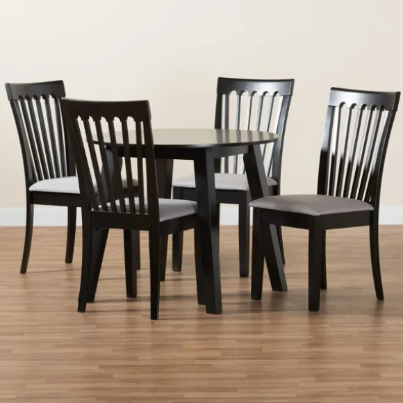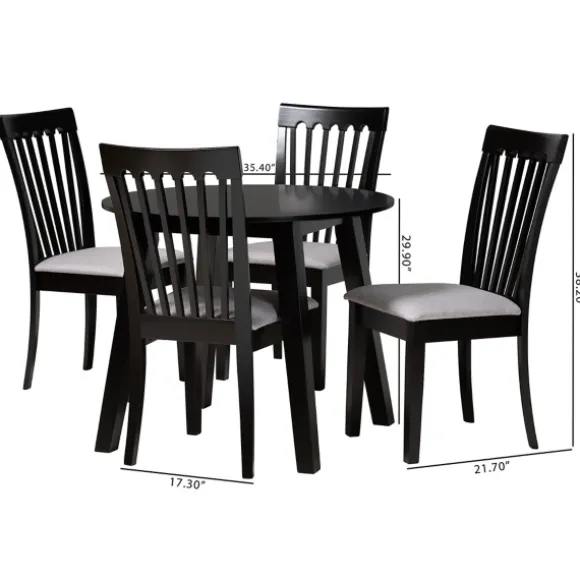Share Meals And Make Memories Around Our Classic Black Round Wood 5-Pc. Dining Set! You’Ll Love How This Timeless Set Complements Your Modern Farmhouse Kitchen Or Your Contemporary Eating Nook. Set Includes One (1) Dining Table And Four (4) Chairstable Measures 29.9H X 35.4 In. In Diametereach Chair Measures 21.7L X 17.3W X 38.2H In.; Seat Height: 18.5 In.Crafted Of Rubberwood And Wood Compositexseats Upholstered In Polyester Fabric And Filled With Foamblack Finish With Gray Seatsfeatures A Spindle Back Chair Designtable Features Tapered Legssome Assembly Requirednot Intended For Commercial Usecare: Wipe With A Soft, Damp Cloth. Not Safe For Outdoor Use.This Item Is Available At Kirklands.Com Only, Not Available In Stores. Please Note: This Item Cannot Be Shipped To Apo/Fpo Addresses.Warning:This Product Can Expose You To Chemicals Including Formaldehyde And Phthalate Which Are Known To The State Of California To Cause Cancer And Birth Defects Or Other Reproductive Harm.For More Information Go Towww.P65Warnings.Ca.Gov .