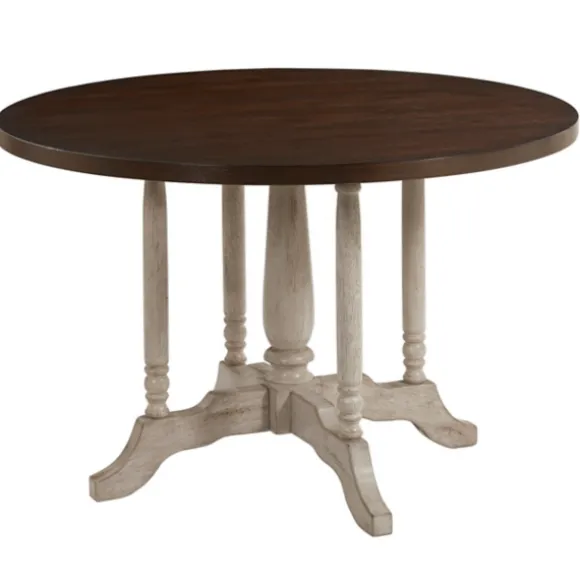 Bring Some Farmhouse Charm To Your Home With Our Lovely Brown And White Round Wooden Dining Table. You’Ll Love The Eye-Catching Turned Base Of This Rustic Dining Table. Table Measures 47L X 47W X 30H In.Crafted Of Solid Rubberwoodbrown Tabletop Finishwhite Base Finishbase Features Intricately Turned Legsweight: 78 Lbs.Assembly Requirednot Intended For Commercial Usecare: Dust With A Soft, Dry Cloth.This Item Is Available At Kirklands.Com Only, Not Available In Stores. Please Note: This Item Cannot Be Shipped To Apo/Fpo Addresses.