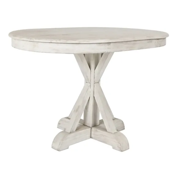 Enjoy All Your Meals In Rustic Style With This White Distressed Wood X Base Oval Dining Table! You’Ll Adore How It Matches Shabby-Chic And Country Cottage Decor. Table Measures 47L X 31W X 30H In.Crafted Of Reclaimed Pine Woodwhite Distressed Wood Finishcarved X Base Designoval Shapeweight: 48.5 Lbs.Assembly Requirednot Intended For Commercial Usecare: Dust Surfaces With A Feather Duster And Wipe Gently With A Slightly Damp Cloth. Be Sure To Wipe Any Spills Immediately. Do Not Place Furniture Near Heating Outlets Or Direct Sunlight. Do Not Use Silicone Based Polishes, Cleaners, Solvents Or Abrasives.This Item Is Available At Kirklands.Com Only, Not Available In Stores. Please Note: This Item Cannot Be Shipped To Apo/Fpo Addresses.