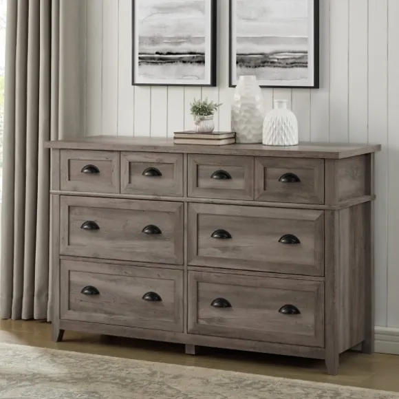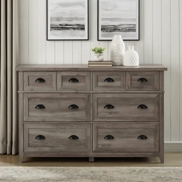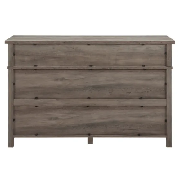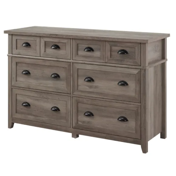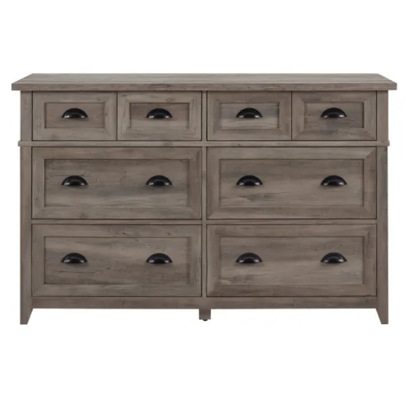 Let Your Personal Style Shine With This Stunning Piece. Featuring Classy Black Hardware, The Graywash Wood Cup Handle Dresser Is Sure To Elevate Your Living Space’S Style From Basic To Beautiful. Dresser Measures 52L X 18W X 33H In.Crafted Of Warp-Resistant Composite Wood, Laminate, And Powder-Coated Steel Hardwarenatural Graywash Wood Finish With Black Knobs And Legsincludes Six (6) Drawers On Telescoping Metal Glidesfeatures Powder-Coated Cup Handlestop Row Features A Faux Double-Drawer Designassembly Requirednot Intended For Commercial Usecare: Wipe With A Soft, Damp Cloth.This Item Is Available At Kirklands.Com Only, Not Available In Stores. Please Note: This Item Cannot Be Shipped To Apo/Fpo Addresses.Warning:This Product Can Expose You To Chemicals Including Dust And Phthalates Which Are Known To The State Of California To Cause Cancer And Birth Defects Or Other Reproductive Harm.For More Information Go Towww.P65Warnings.Ca.Gov .