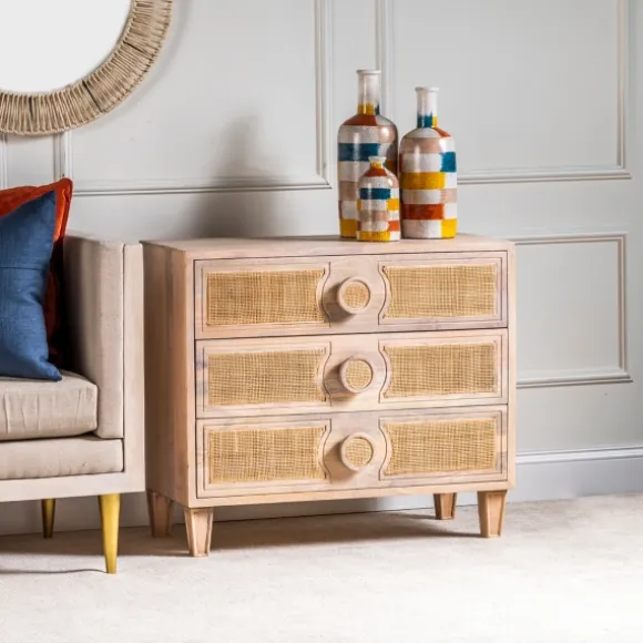 This Hand Woven Cane 3-Drawer Wood Chest Is Great For Some Stylish Extra Storage In Your Living Room Or Bedroom. With Its Wood Finish And Lovely, Woven Cane Accents, It Will Give Your Space A Refreshing, Vintage Quality. Chest Measures 34L X 16W X 29.5H In.Crafted Of Mango Woodbrown Finishfeatures Three (3) Drawersdrawers And Knobs Feature Hand-Woven Canestudy Square Legsweight: 56 Lbs.Assembly Requirednot Intended For Commercial Usecare: Dust With A Soft, Dry Cloth.This Item Is Available At Kirklands.Com Only, Not Available In Stores. Please Note: This Item Cannot Be Shipped To Apo/Fpo Addresses.Warning:Cancer And Reproductive Harm – For More Information Go Towww.P65Warnings.Ca.Gov .