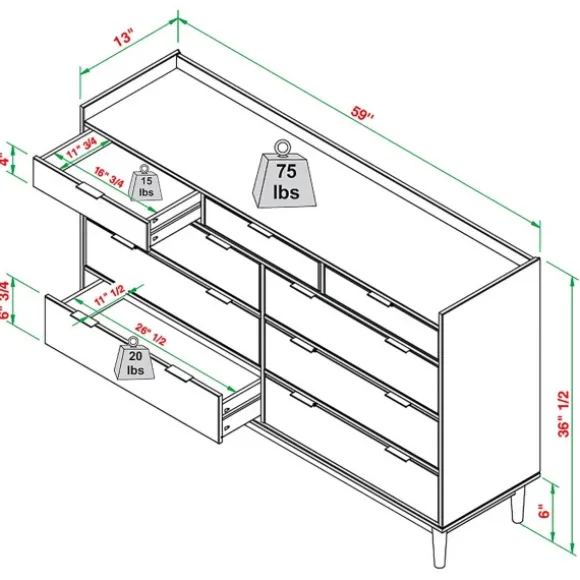 Enjoy Furniture That Makes A Statement. The Midnight Solid Wood Pull Tab Large Dresser Is The Perfect Mix Of Functional And Stylish. This Classic Design Is Sure To Compliment Both Modern And Traditional Homes. Dresser Measures 60L X 16W X 36H In.Crafted Of Wood, Wood Composite, And Metalblack Wood Finishblack Metal Finishpull Tab Designnine (9) Drawersmaximum Weight: 75 Lbs.Assembly Requirednot Intended For Commercial Usecare: Spot Clean Only.This Item Is Available At Kirklands.Com Only, Not Available In Stores. Please Note: This Item Cannot Be Shipped To Apo/Fpo Addresses.