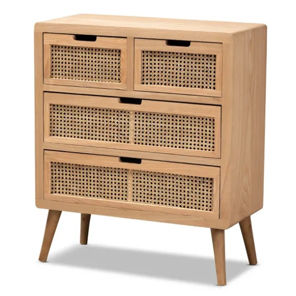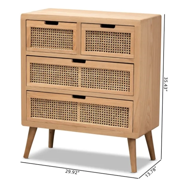 Complete Your Bohemian Inspired Space With Our Oak And Rattan 4-Drawer Chest! This Chest Would Make A Lovely Dresser Or Buffet Table In Your Dining Room.Chest Measures 29.9L X 13.78W X 35.4H In.Crafted Of Wood And Wood Composite Oak Wood Finishdrawers Are Accented With A Rattan Facefeatures Four (4) Pull Out Drawerstapered Legssome Assembly Requirednot Intended For Commercial Usecare: Dust With A Soft, Dry Cloth. This Item Is Available At Kirklands.Com Only, Not Available In Stores. Please Note: This Item Cannot Be Shipped To Apo/Fpo Addresses.Warning:This Product Can Expose You To Chemicals Including Formaldehyde And Phthalate Which Is Known To The State Of California To Cause Cancer And Birth Defects Or Other Reproductive Harm.For More Information Go Towww.P65Warnings.Ca.Gov .