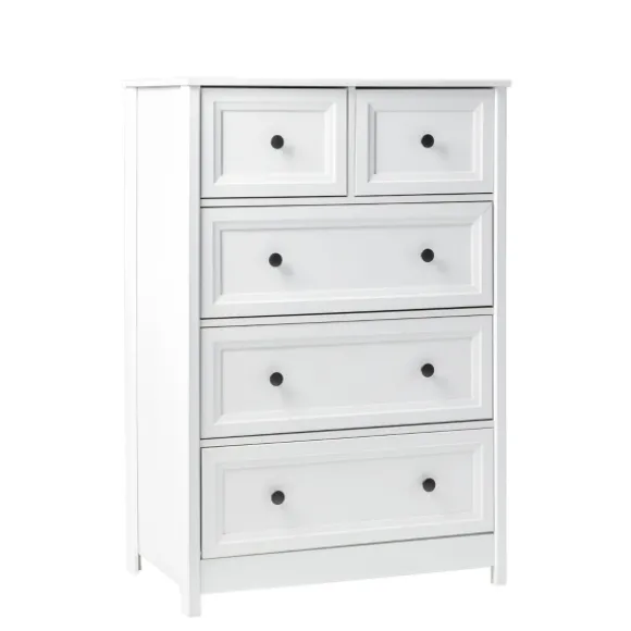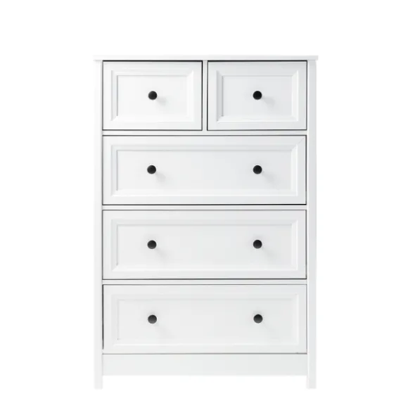 Kirkland’s Home Dressers & Chests-White Wood Five Framed Drawers Dresser