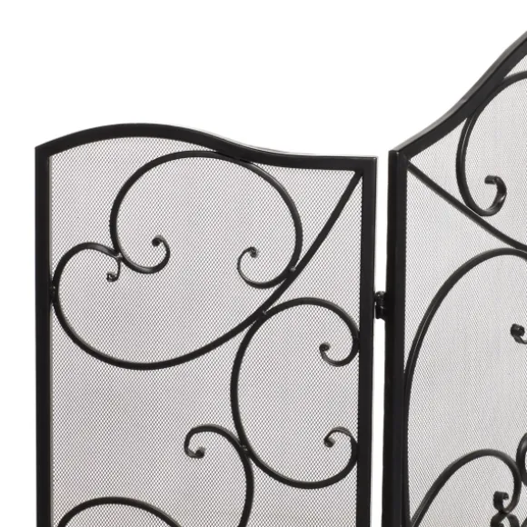 Simple Elegance Is Exemplified In Our Black Scroll Work Metal Fireplace Screen! Scrolls Adorn The Screen Making It A Gorgeous Addition To Your Fireplace.Screen Measures 49L X 0.5W X 36H In.Crafted Of Metal Black Metal Finishthree (3) Hinge Curved Panel Designmesh Screenfeatures A Fleur-De-Lis Accents And A Medallion Centerweight: 12.7 Lbs.Care: Dust With A Soft, Dry Cloth. This Item Is Available At Kirklands.Com Only, Not Available In Stores. Please Note: This Item Cannot Be Shipped To Apo/Fpo Addresses.