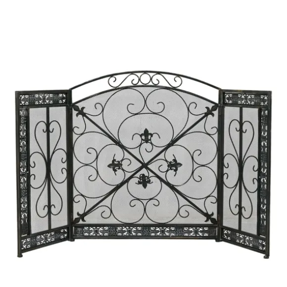 Improve Your Cozy Atmosphere With A Dash Of Safety And Elegance! Our Distressed Fleur De Lis Three-Panel Fire Screen Is …