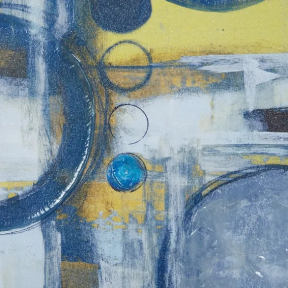 Create Your Very Own Gallery Display With Our Blue Bliss Multi-Sized Canvas Art Prints. Their Abstract Designs In Varied Sizes Will Give Your Walls That Sought After, Collection Look!Set Includes Five (5) Framed Prints Small Square Print Measures 17.6L X1.61W X 17.6H In. Medium Square Print Measures 19.6L X 1.61W X 19.6H In. Large Square Print Measures 21.6L X 1.61W X 21.6H In. Small Rectangle Print Measures 15.6L X 1.61W X 19.6H In. Large Rectangle Print Measures 16.6L X 1.61W X 36.6H In. Distinctively Printed On Stretched Canvas Bronze Frame Around Wrapped Canvas Features Five (5) Abstract Designs With Circle And Curved Line Details Hues Of Yellow, Blue, And White Weight: 21.78 Lbs. Hangs From Back-Mounted Hardwaredo Not Use Picture Wire To Hang Care: Dust With A Soft, Dry Cloth.This Item Is Available At Kirklands.Com Only, Not Available In Stores. Please Note: This Item Cannot Be Shipped To Apo/Fpo Addresses.
