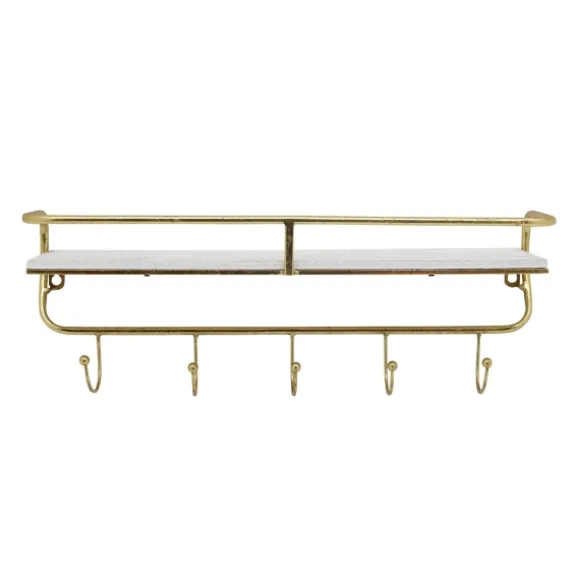 Kirkland’s Home Hooks-Gold Metal And White Wood Wall Shelf With Hooks