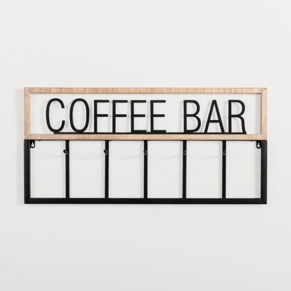 Give Your Favorite Mugs A Place To Shine Using Our Metal And Wood Coffee Bar Wall Hooks! Its Modern-Chic Design Will Turn Your Space Into A Cozy Coffee Shop. Plaque Measures 33L X 1.25W X 15.75H In.Crafted Of Metal And Woodblack Metal Finishwhitewashed Top Frame Finishopen Backincludes Five (5) Metal Hooksfeatures The Text “Coffee Bar”Hues Of Black And Tanhangs From Back-Mounted Hardwarecare: Dust With A Soft, Dry Cloth.Contact Your Local Kirkland’S Store For Availability. Quantities And Selection May Vary By Location.