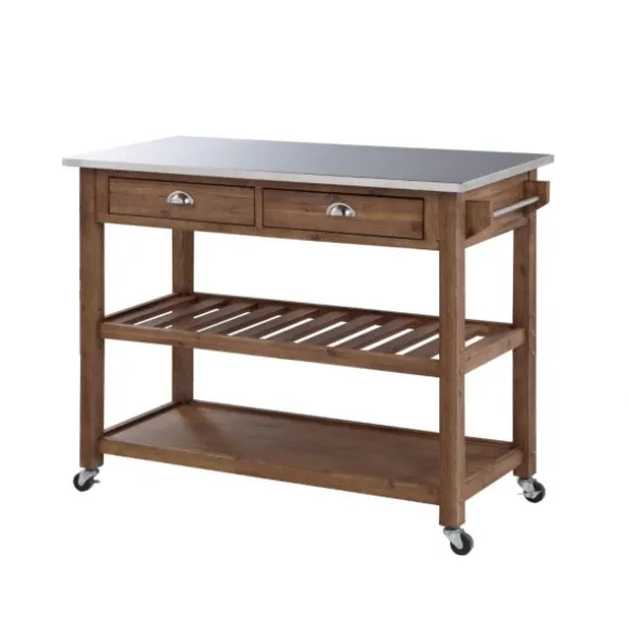 Kirkland’s Home Kitchen Islands & Bar Carts-Barnwood Sonoma Stainless Steel Top Kitchen Cart