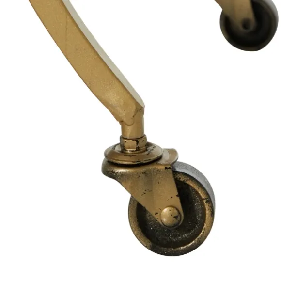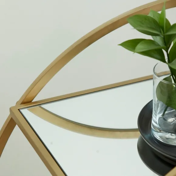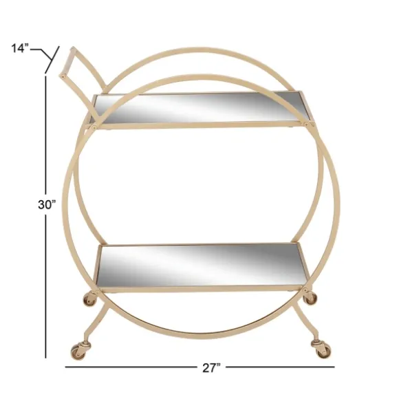Display Your Bar Accessories With Style And Ease With This Gold Metal Circular Bar Cart. With Its Wheels And Mirrored Shelves, It’S Perfect For Serving Guests.Cart Measures 27L X 14W X 30H In.Crafted Of Iron, Glass, And Woodgold Frame Finishfeatures Two (2) Shelvesmirrored Shelf Finishfeatures A Circular Frame Shape With Four (4) Wheelsnot Intended For Commercial Usecare: Dust With A Soft, Dry Cloth.This Item Is Available At Kirklands.Com Only, Not Available In Stores. Please Note: This Item Cannot Be Shipped To Apo/Fpo Addresses.